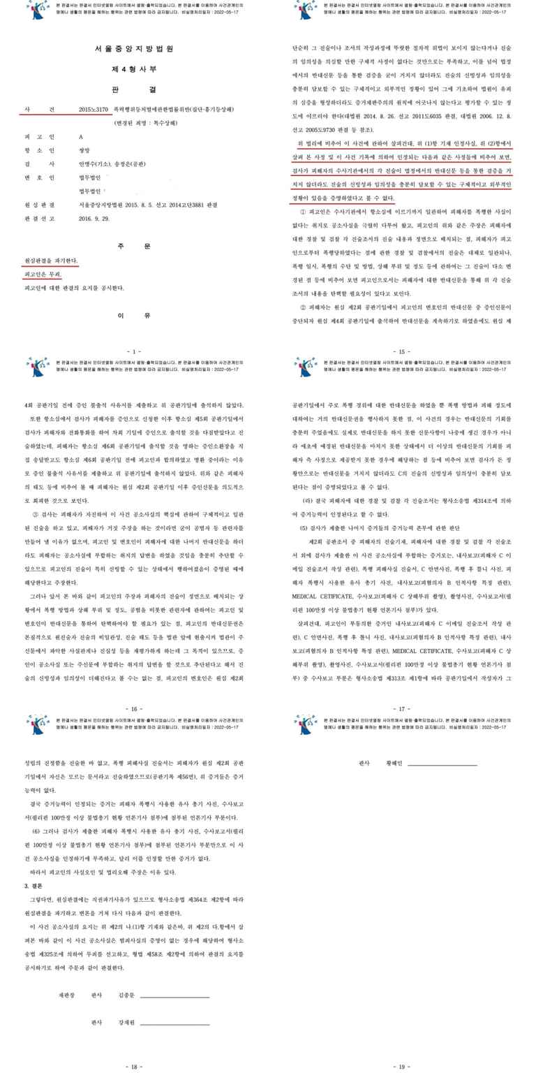 • 항소심 서울중앙지방법원의 판결 : 서울중앙지방법원 2016. 9. 29. 선고 2015노3170 판결