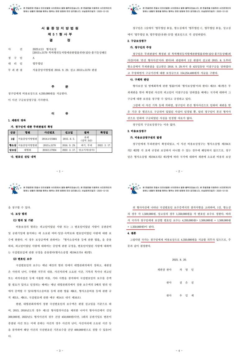 • 1심 서울중앙지방법원의 판결 : 서울중앙지방법원 2015. 8. 5. 선고 2014고단3881 판결