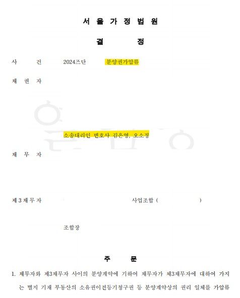 의뢰인이 배우자와 나눈 메시지 외 분양권을 특정할 수 있는 다른 자료는 없었지만, 재판부는 의뢰인의 재산분할 청구 채권 및 분양권 가압류의 필요성을 인정하며, 분양권 가압류 신청을 인용하였습니다.