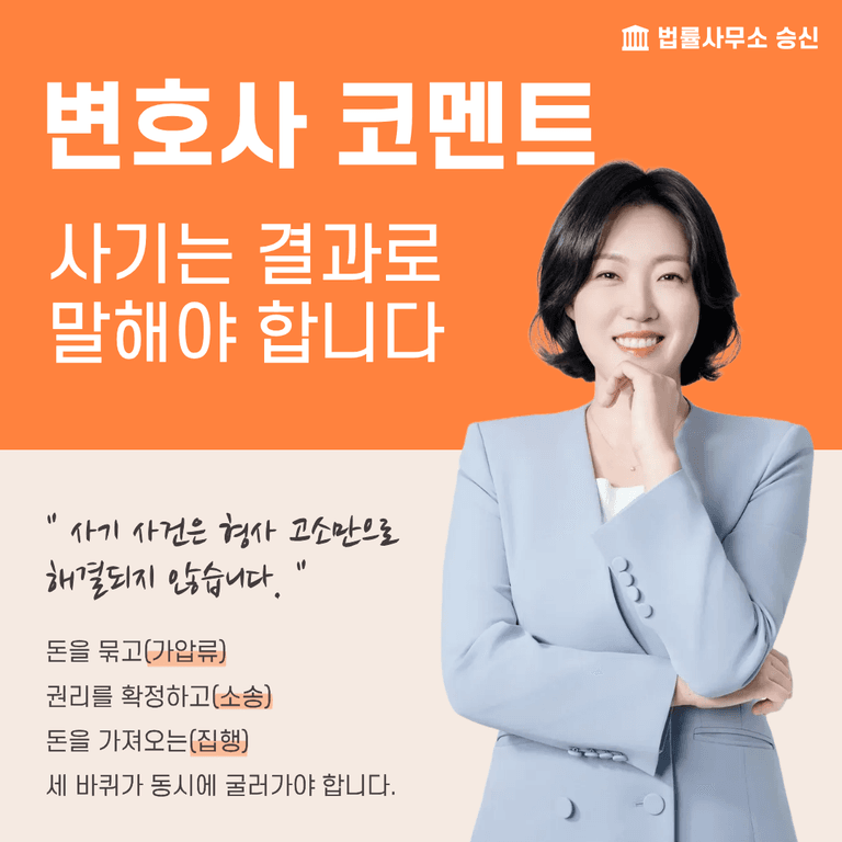 사기 사건은 형사 고소만으로 해결되지 않습니다.