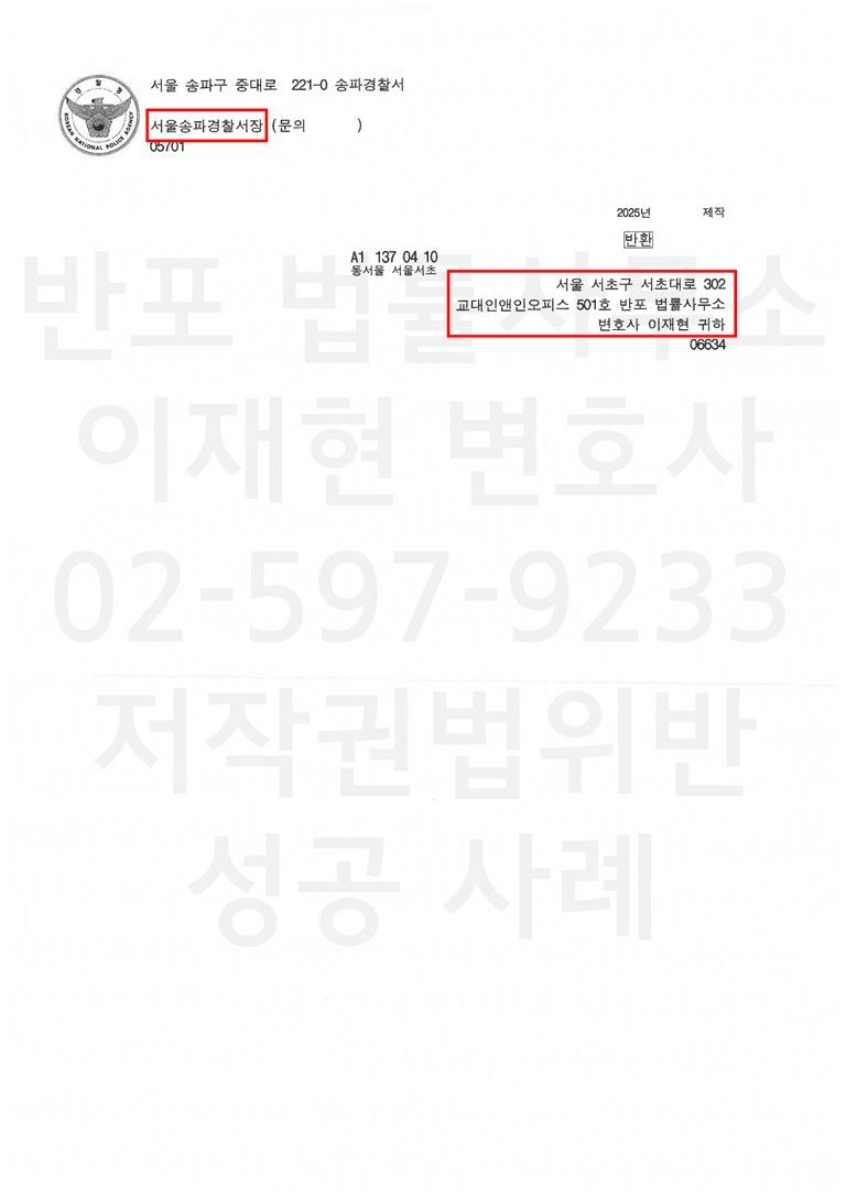 반포 법률사무소는 토렌트 사용 다운로드로 인한 저작권법 위반 사건에서 합의 및 고소취하를 통한 불송치를 목표로, 사건 초기부터 의뢰인의 상황과 위험 요소를 종합적으로 고려한 대응을 진행하고 있습니다.