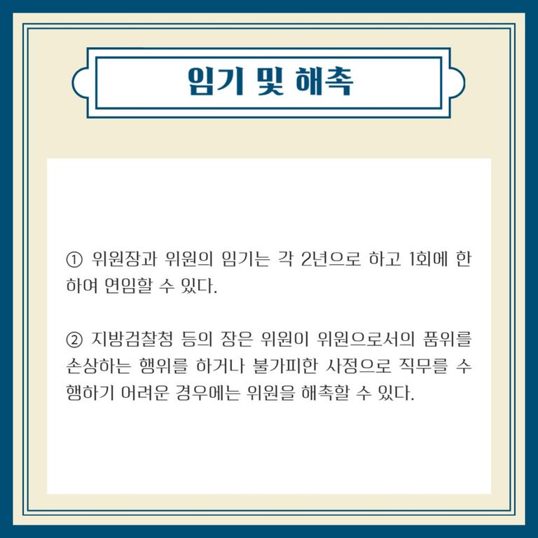 2010년 검사 성접대 사건 등으로 인해 쇠락한 검찰에 대한 국민 신뢰 회복과 검찰 권한 남용 방지를 목적으로 도입되었고, 위원회의 결정에 대해서는 구속력은 없고 권고적 효력만 있습니다.