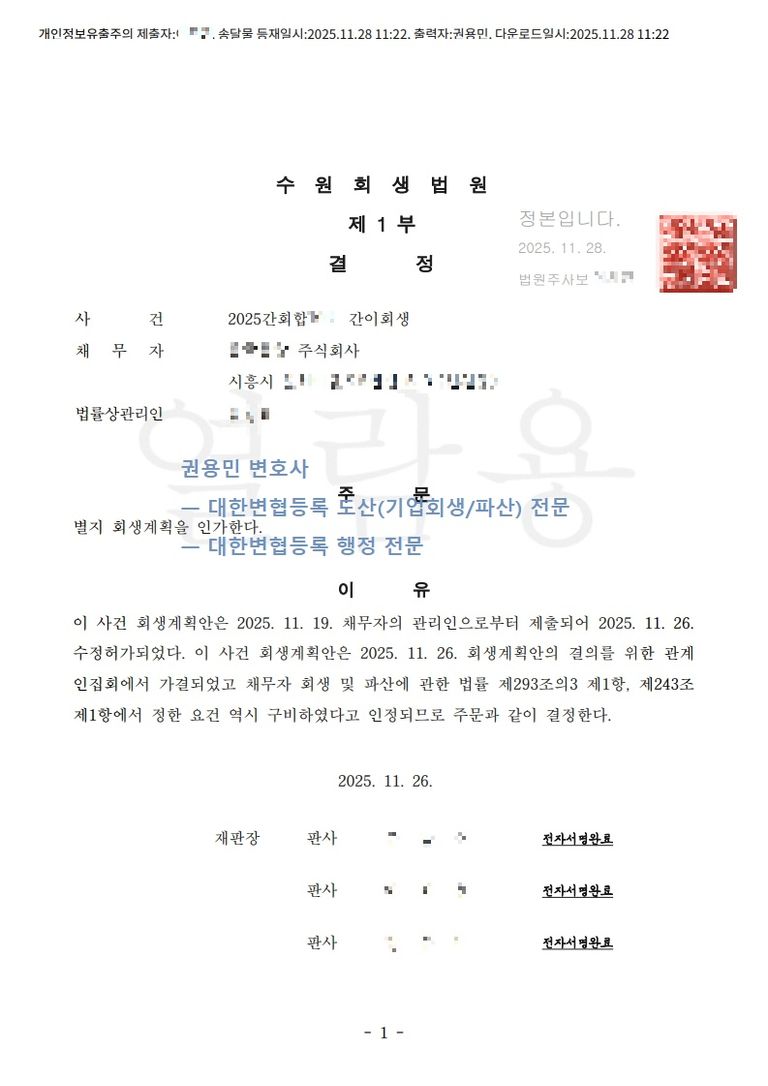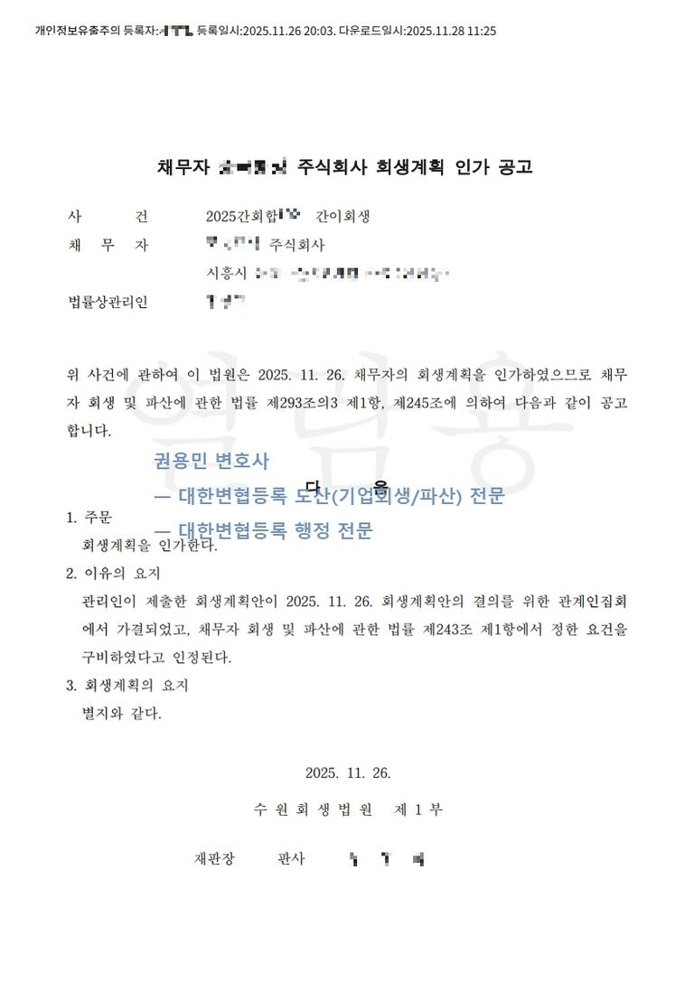 2025. 11. 26. 법인간이회생인가 - 수원회생법원