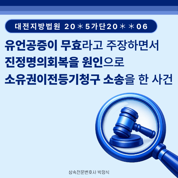 이에 재판부는 유증을 원인으로 한 소유권이전등기의 원인무효 여부에 대하여, 앞서 인정한 바와 같이 유언공정증서 작성일로 추정되는 당시 피상속인은 치매가 이미 심해져 일상생활이 사실상 불가능하였고, 홀로 거동도 어려운 상태였으며, 피상속인의 합리적인 정신능력이 결여된 상태에서 작성된 것이거나 또는 피상속인의 진정한 의사를 확인하지 않은 채 작성되었다고 봄이 타당하므로, 이 사건 유언은 무효이고, 따라서 피고 명의로 이전된 이 사건 소유권이전등기는 원인무효 등기로서 말소되어야 한다고 판단하였습니다.