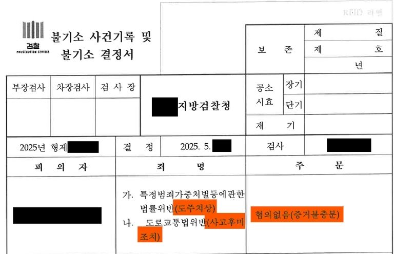 검찰은 이러한 점을 종합적으로 고려해, 의뢰인에게 도주 치상 및 사고 후 미조치 부분에 대해 무혐의 불기소 처분을 하였고, 의뢰인은 최종적으로 음주운전 혐의에 대해서만 집행유예를 선고받아 실형의 위기에서 벗어날 수 있었습니다.