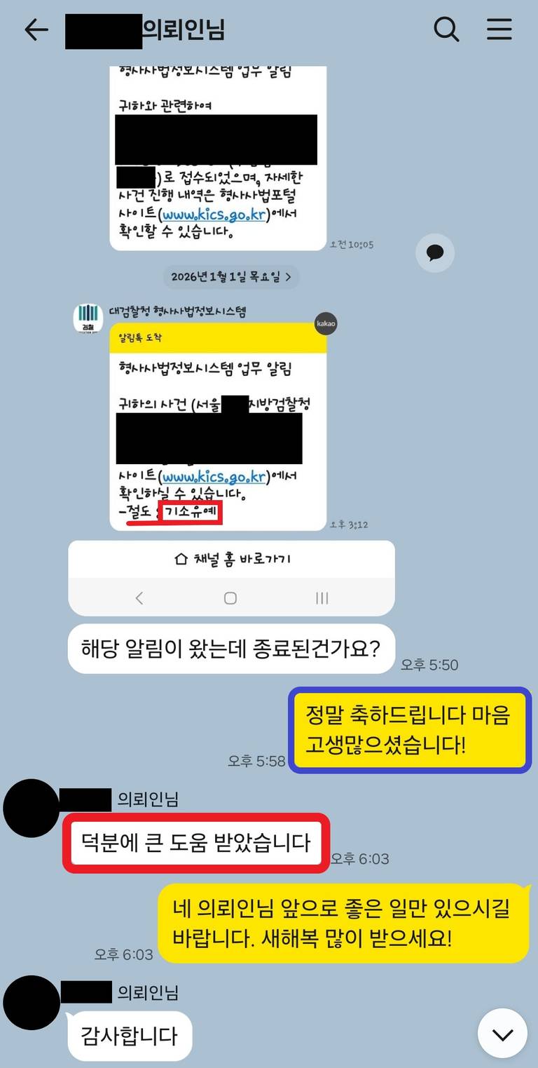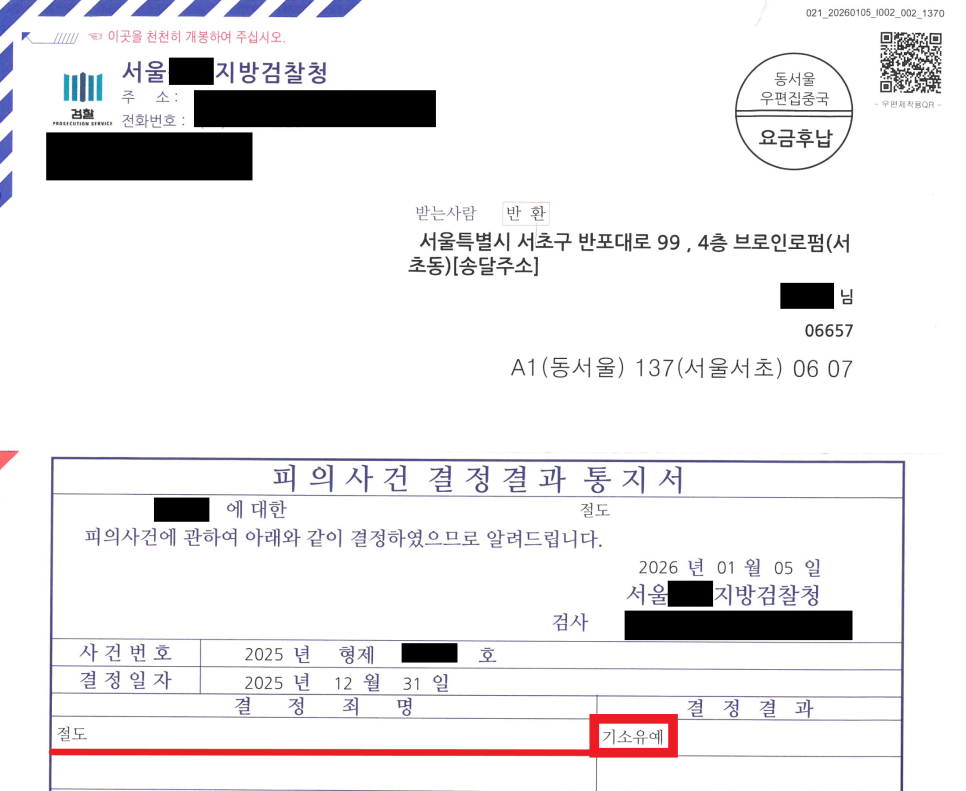 무엇보다 A는 집으로 사건 관련 통지서가 날아와서 노모가 아시게 되는 상황을 두려웠습니다. 미리 경찰과 검사에게 송달장소지정신청서를 제출하여 제 사무실로만 통지서가 송달되었습니다.