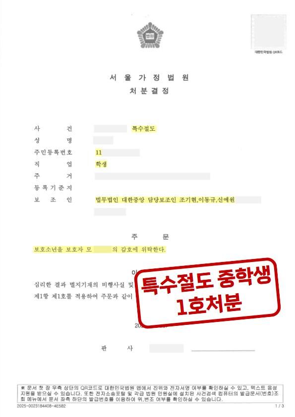 그 결과 재판부는 이동규 변호사의 주장을 모두 인정하고, A양을 부모님의 보호에 맡기는 1호 처분을 내렸습니다. 이에 A양은 일상과 학업생활에 지장을 받지 않을 수 있었습니다.
