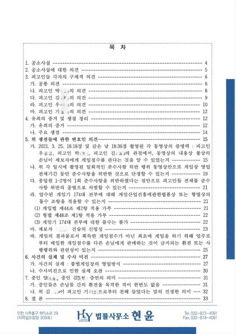 변론내용이 아주 많기 때문에 제가 변론요지를 모두 말씀드리기는 곤란하고, 아래 목차를 잘 살펴보시면, 제가 제판을 진행하면서 주장한 내용들이 무엇인지 일목요연하게 정리되어 있습니다.