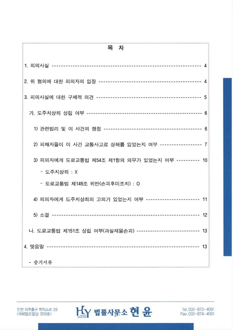 이 사건은 도주치상죄로 검찰에 사건송치가 되었지만, 제가 피해자가 상해를 입지 않았다는 점을 입증하여 혐의없음 처분된 사례입니다.