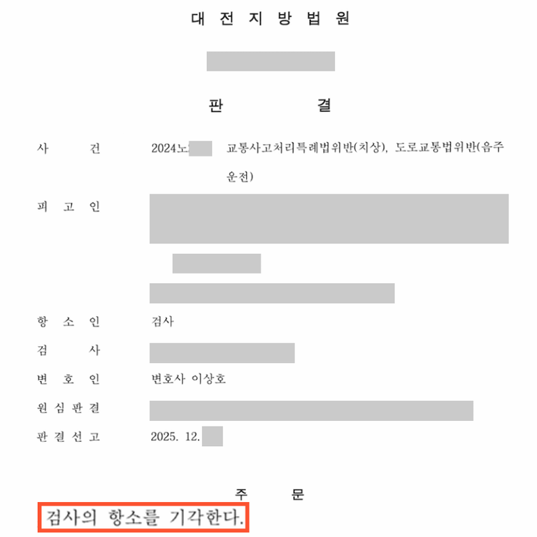 1심 무죄 → 2심 무죄 확정이라는 최종 결과를 받게 되었습니다.