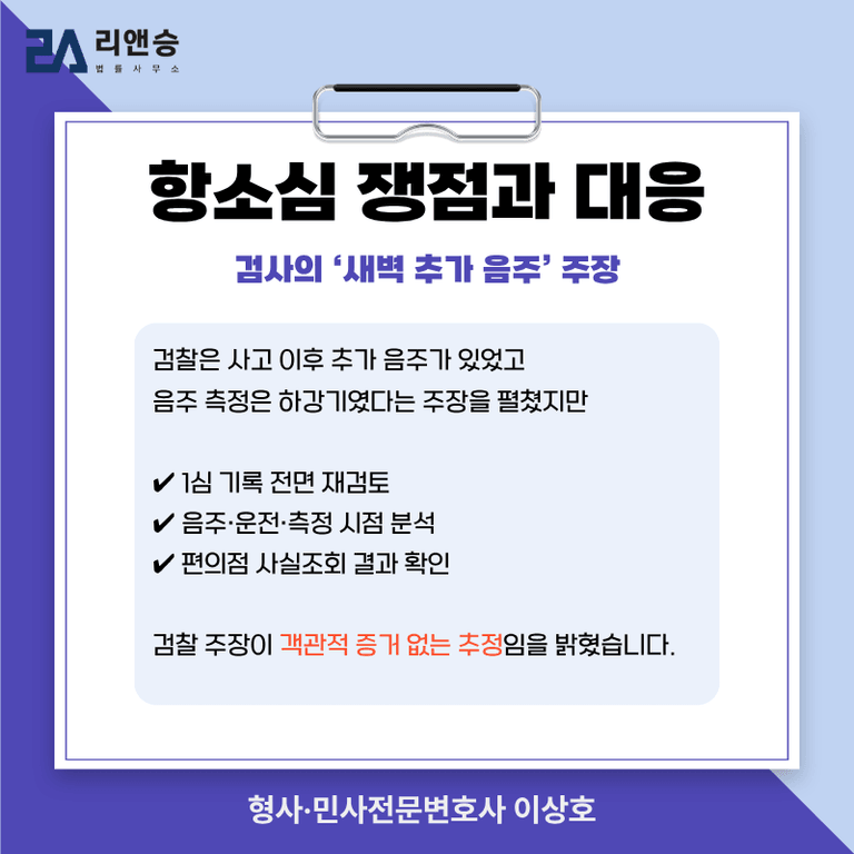 의뢰인이 사고 이후 새벽 시간대에 추가로 술을 마셨고,