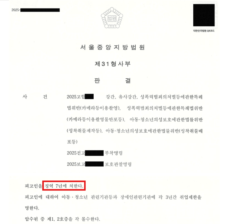 법원은 판결에서 범행의 반복성, 피해자에게 남긴 회복하기 어려운 정신적 피해, 그리고 범행의 전반적인 중대성을 이유로 가해자에게 징역 7년을 선고하였습니다.