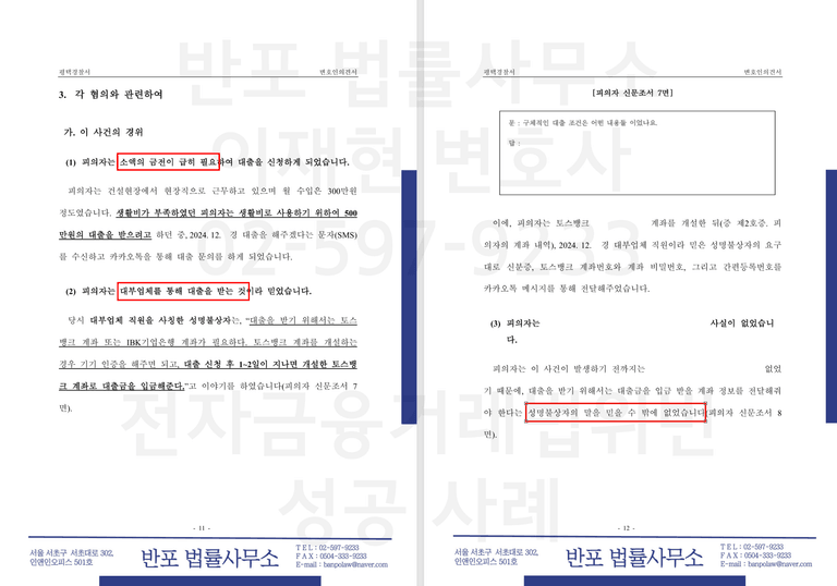 반포 법률사무소는 본 사안의 핵심을 ‘대출 과정에서의 기망’과 ‘범의(고의) 부재’로 명확히 구분하여 대응하였습니다.