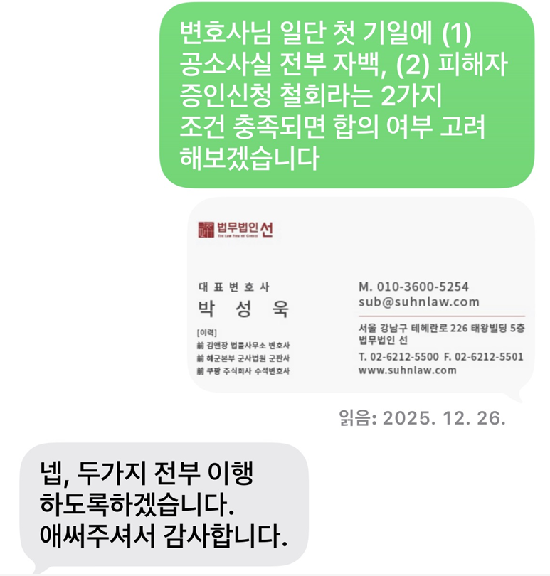 변호사를 통해 합의를 요청하였습니다