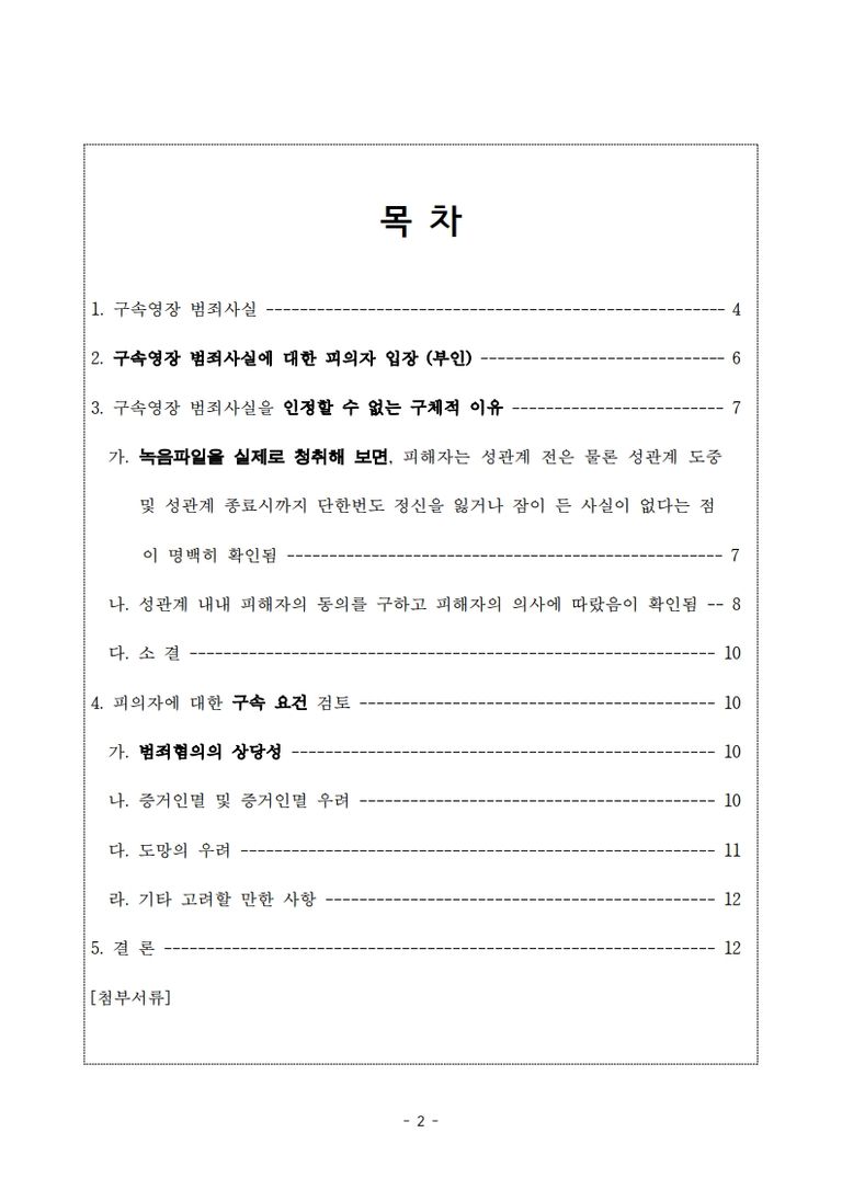 검찰이나 구속영장신청서 제6쪽에 의하면, 사경은 현장 CCTV 영상, 상호 주고받은 전화 통화 녹음 파일 정리 자료, SNS ‘페이스북’ 메시지 자료, 【피의자가 범행 당시 상황을 녹음한 파일의 속기록 자료】, 피해자가 제출한 산부인과 진단서 등을 종합하여, 범죄사실을 작성하였다는 것이나, 위 녹음 파일을 청취해 보면, 피해자는 술에 취했을 뿐 정신을 잃고 쓰러진 적이 단한번도 없음이 입증되고, 그렇기에 범죄사실에 기재된 것과 같이, 피해자가 음부에 통증을 느껴 잠시 정신이 들었다거나, 거부 의사를 밝힌 채 다시 정신을 잃은 사실도 당연히 있을 수 없는 것입니다.