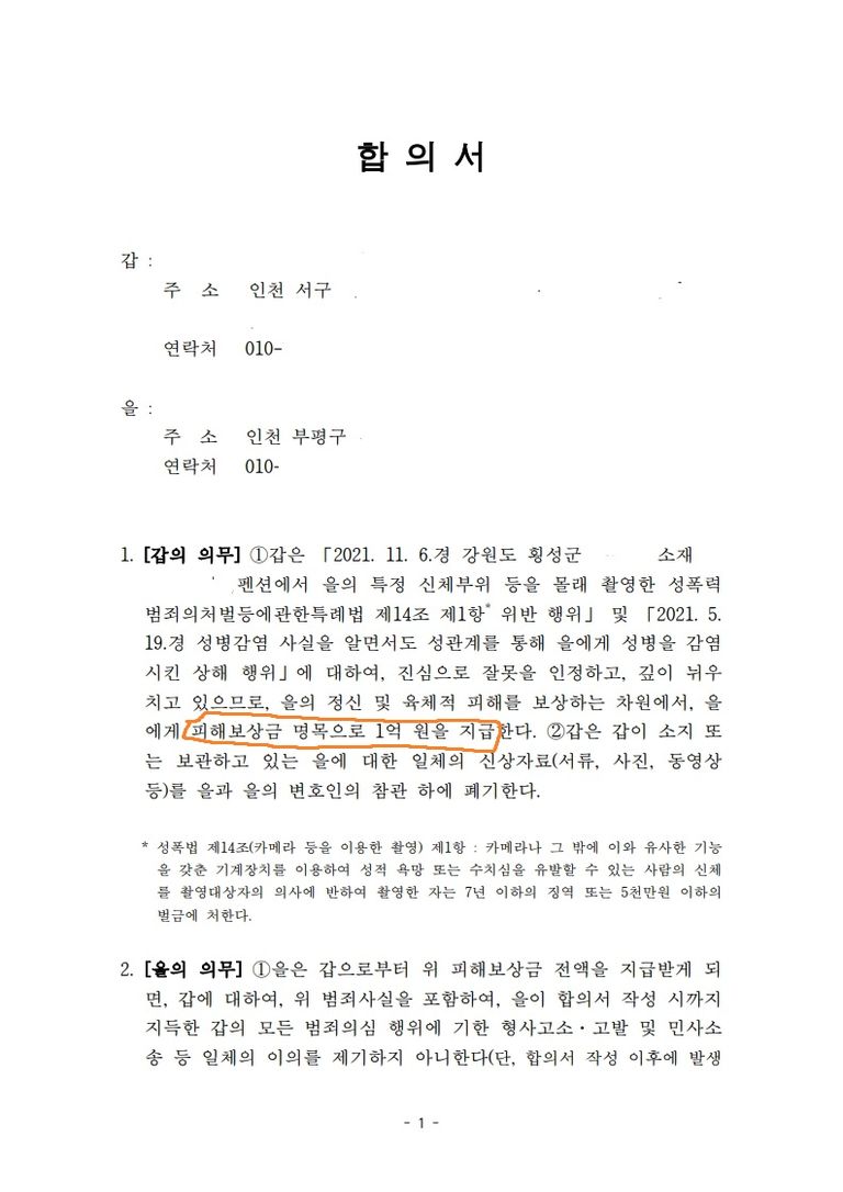 - 실제 합의금 모두 지급 완료됨 ▨