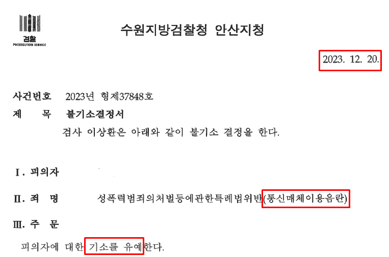 결국 이 사건은 검찰에서 기소유예로 종결지었습니다