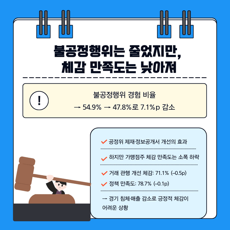 불공정행위 줄었지만 체감 만족도 낮아져