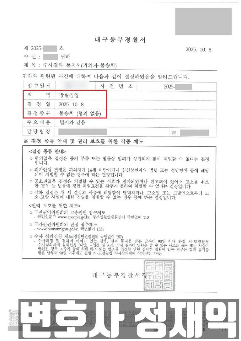 특히 주거침입 범죄와 같이 처분권자를 설득하는 게 중요한 사건에서는 더욱 그렇습니다.