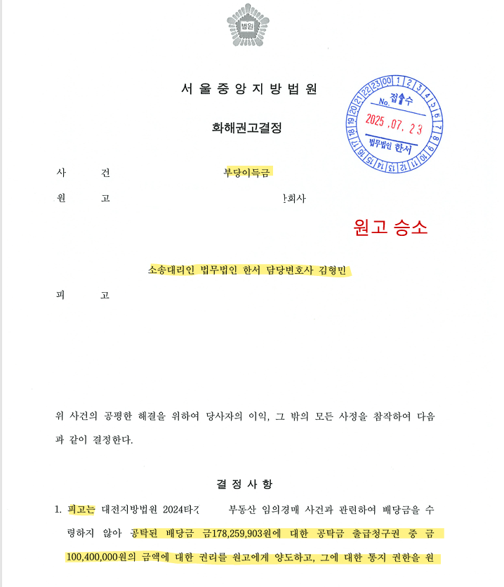 이는 집행·배당 사건에서 법무법인 한서의 전문성과 치밀한 전략을 잘 보여주는 성공사례라 할 수 있습니다.