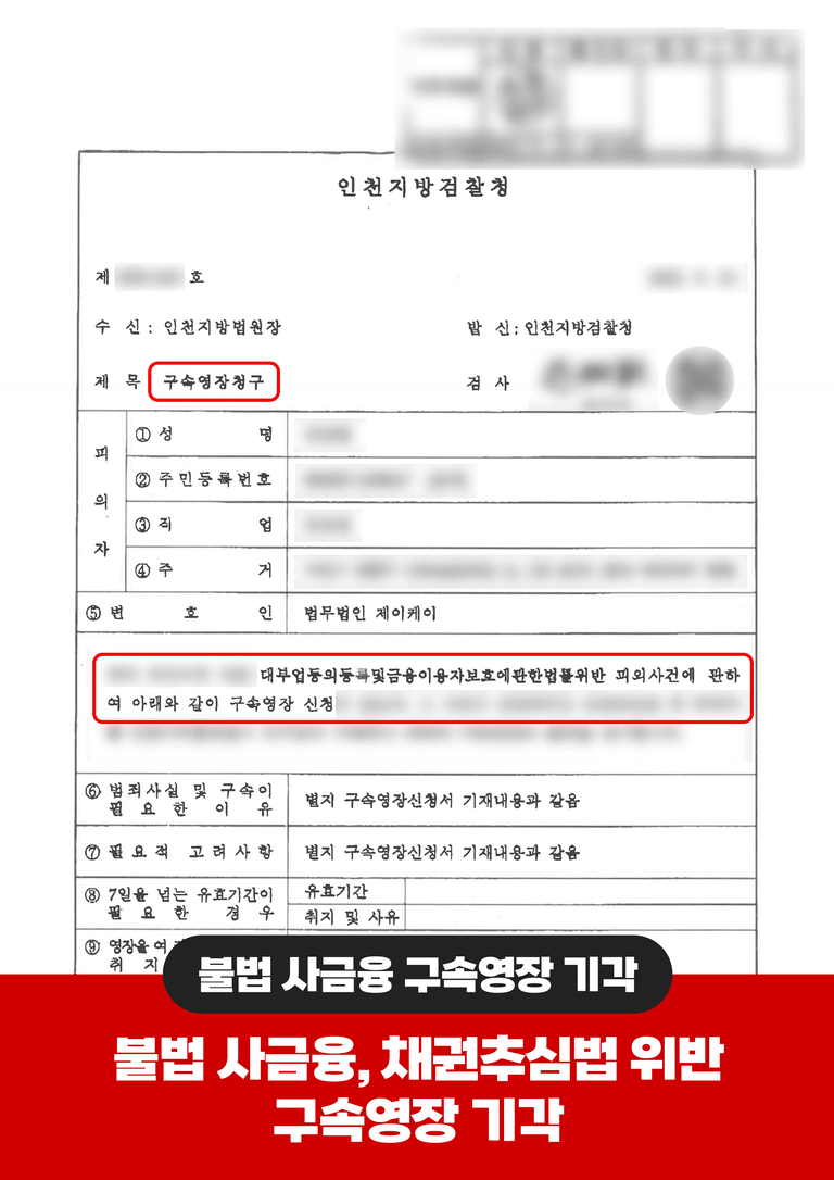 법원은 구속영장을 기각했고, 최종적으로 재판부는 통상 실형이 선고되는 불법추심 사건임에도 의뢰인의 성실한 사회생활과 가족 유대관계를 고려하여 집행유예를 선고했습니다.