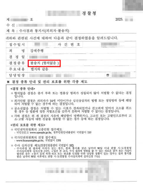 #4. 경찰, “의뢰인은 증거불충분하여 혐의 없다.”