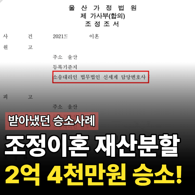 이런 상황에서 어떻게 조정이혼 재산분할 2억 4천만원을 받아냈을까요?