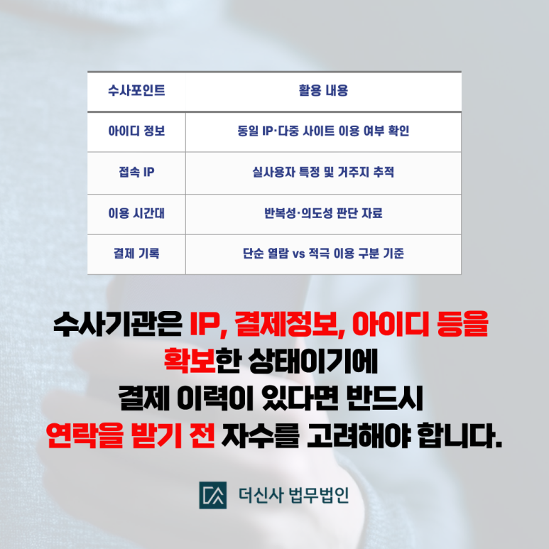 여기에 더해 유료 영상이나 VIP 콘텐츠 이용을 위해 포인트 결제 내역이 존재한다면, 수사기관은 이를 단순한 호기심이 아닌 적극적인 이용 행위로 해석할 가능성이 큽니다.