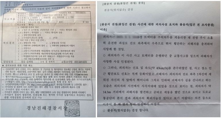 이번 사건 역시 농기계(트랙터)를 운전하던 의뢰인이 보행자를 충격해 사망에 이르게 했다는 이유로 형사처벌 가능성이 제기되었으나, 철저한 사실관계 분석과 법리 검토를 통해 최종적으로 ‘혐의없음(불송치)’ 결정을 받은 사례입니다.