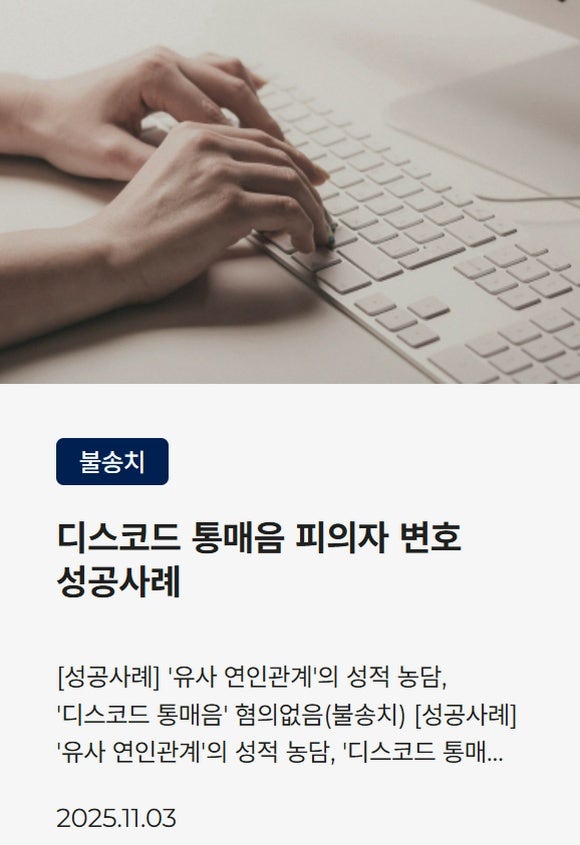 ![[통매음]인스타 DM 성희롱 고소당했다면? 무혐의 전략](/_next/image?url=https%3A%2F%2Fd2ai3ajp99ywjy.cloudfront.net%2Fuploads%2Ftitleimage%2Foriginal%2F5c480901b834cb67981158b4-original.jpg&w=3840&q=75)