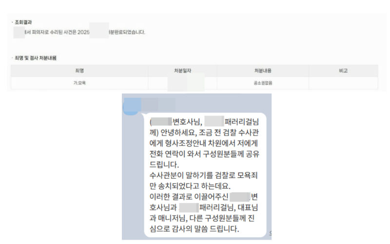 끝내 혐의없음(불송치) 처분을 받을 수 있었는데요.