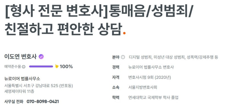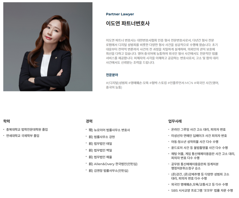 뉴로이어 법률사무소 이도연 파트너변호사입니다.