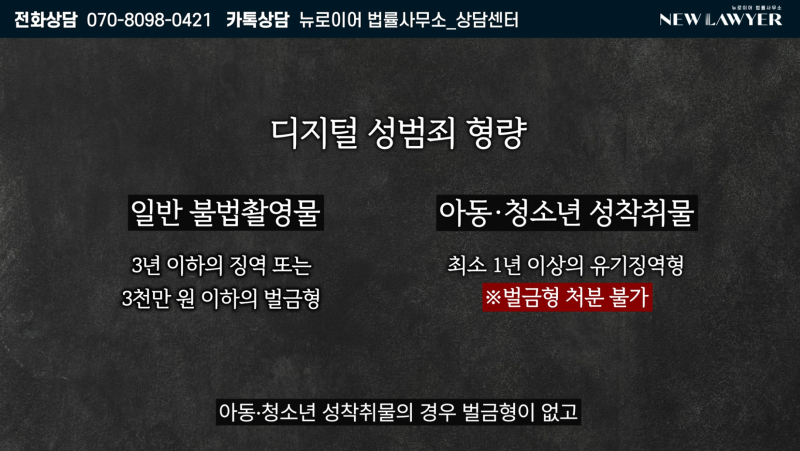 특히 아청물 시청은 본인이 의도하지 않았더라도 벌금형 없이 최소 1년 이상의 유기징역에 처해질 수 있습니다.
