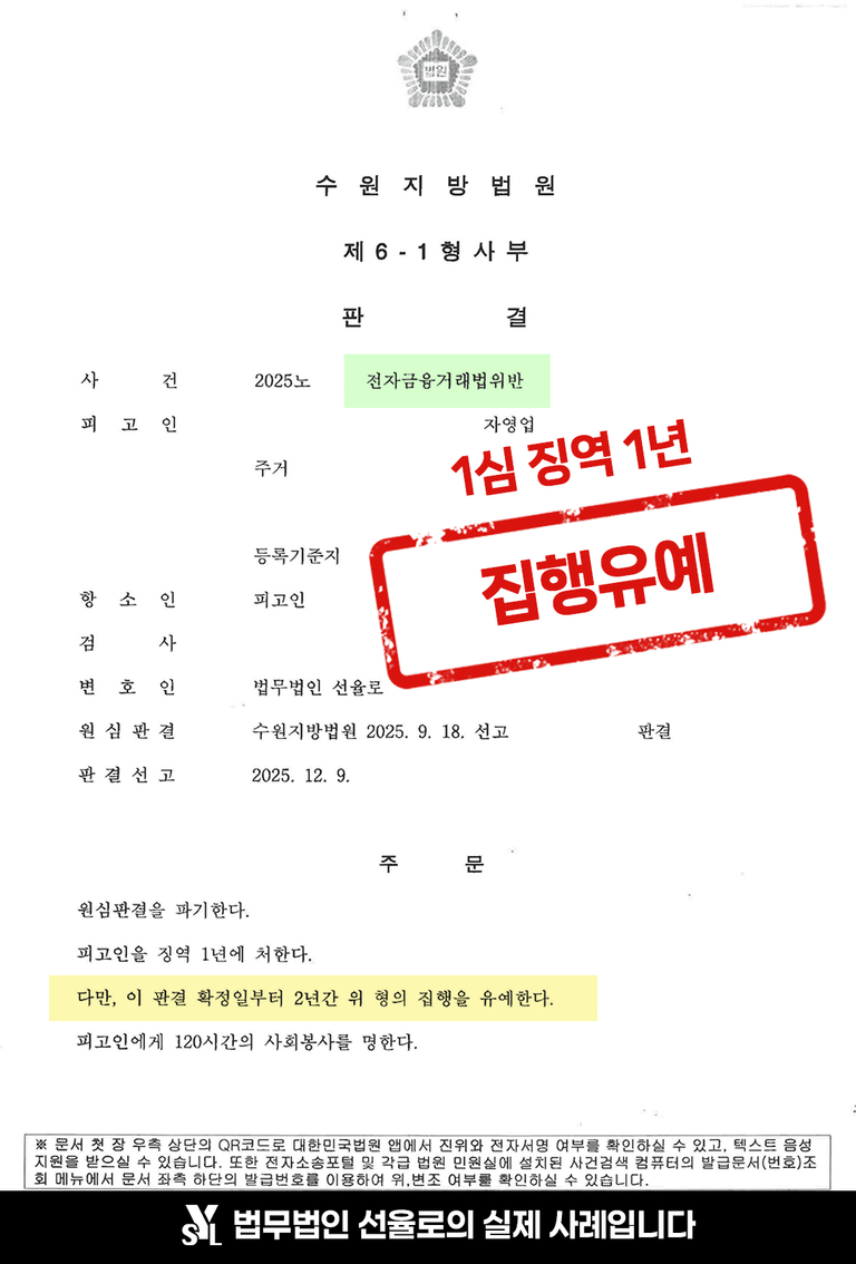 전자금융거래법 위반 사건에서항소심을 통해 양형 사유를
