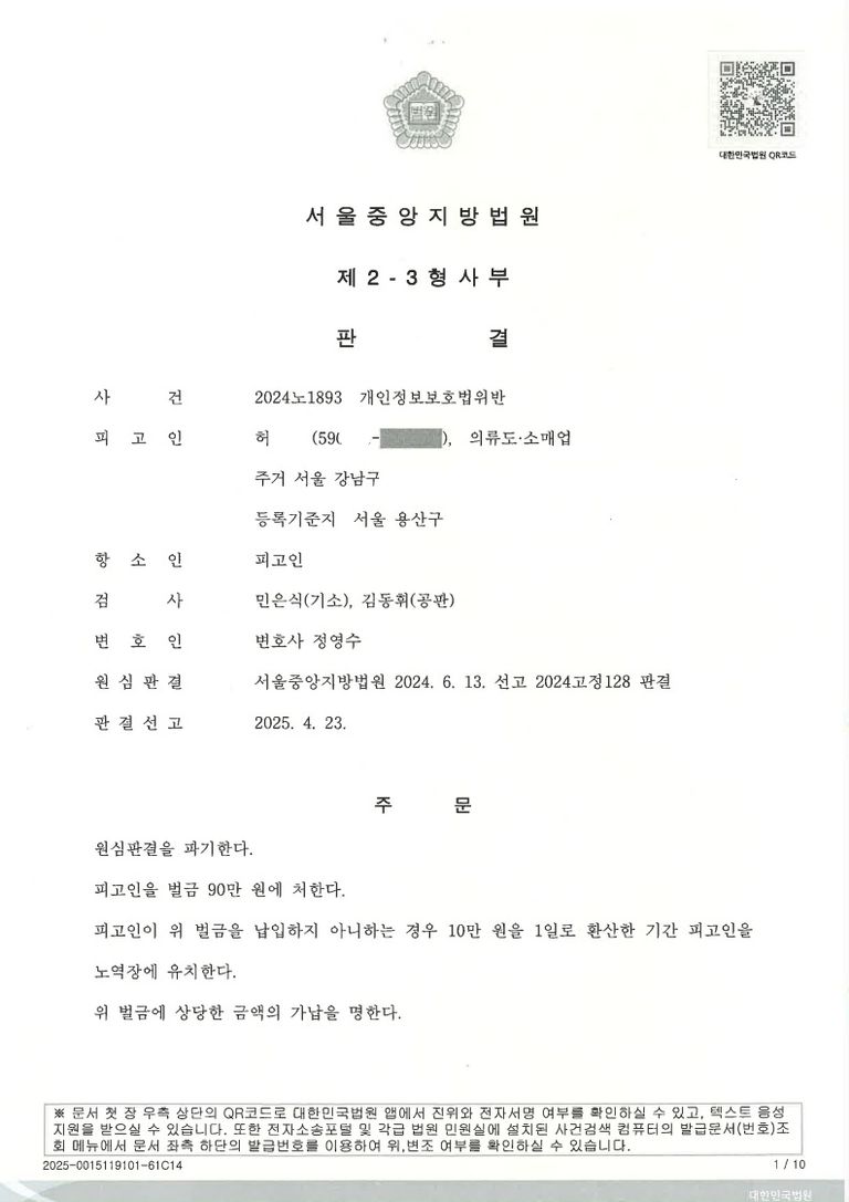 원심은 이OO가 피고인에게 추석연하장을 보낼 수 있도록 회원명부를 제공한 것은 권한 없는 행위에 해당하므로 이OO는 물론 피고인에게도 유죄가 인정된다면서, 피고인에게 벌금 200만 원을 선고하였으나, 이는 법리오해로 인한 것이고, 설령 유죄가 인정된다고 하더라도 과중한 양형이라는 입장입니다.