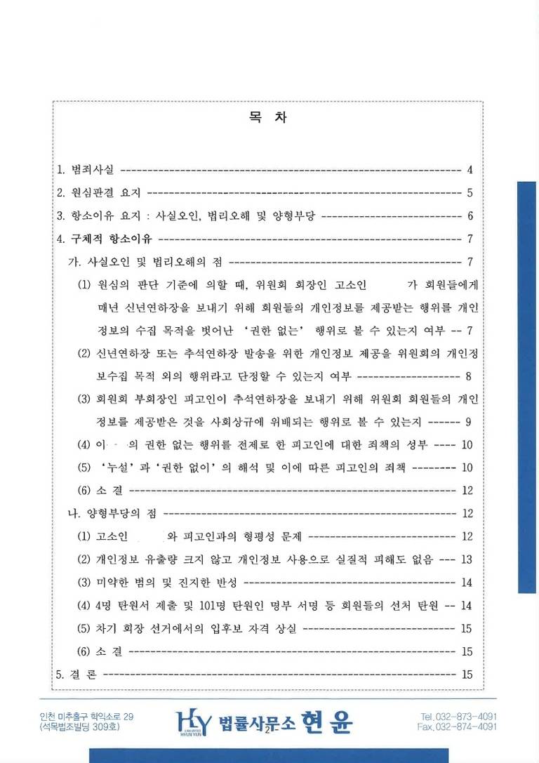 아래 항소이유서 목차를 보시면, 저의 변론 내용을 일목요연하게 확인하실 수 있습니다.