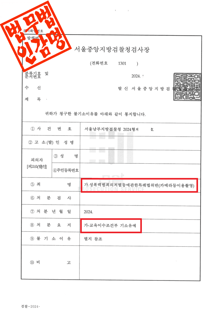 - 성폭력 재범방지 교육 이수를 조건으로 피의자에 대한 기소를 유예한다.