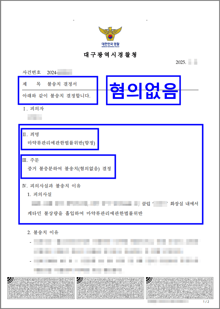 🔎 성공사례 | 케타민 투약 혐의, 불송치(혐의없음)로 수사 단계 종결