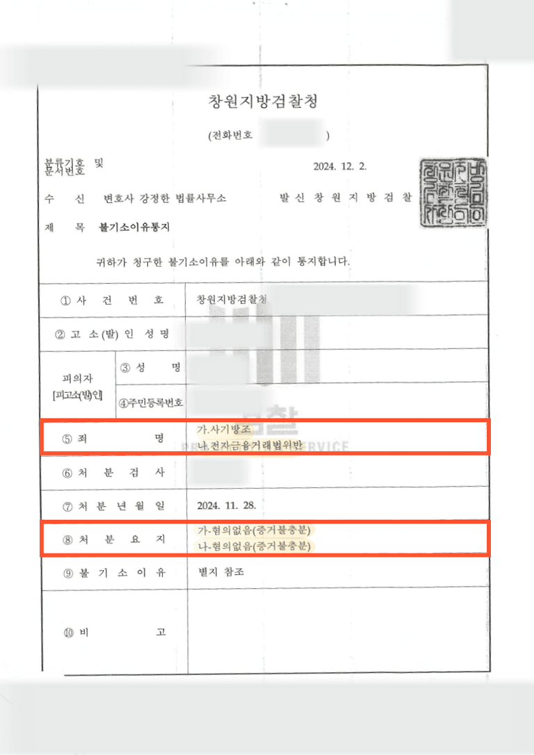 오늘은 이러한 유형의 사건에서, 범행 인식이나 고의가 없다는 점을 소명해 사기 방조 및 전자금융거래법 위반 모두 혐의없음(불기소 처분)을 받은 사례를 소개해드리겠습니다.