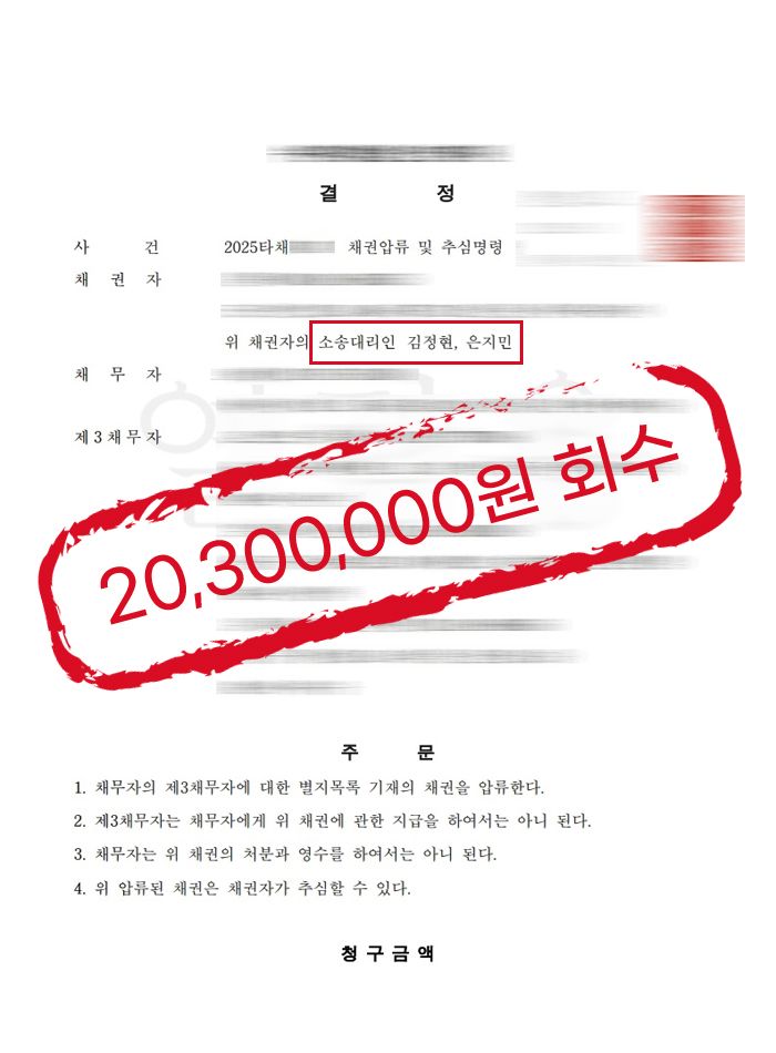 변호사 선임 비용 그 이상의 가치는 결국 '실제 통장에 입금되는 회수 결과'로 증명해야 합니다.