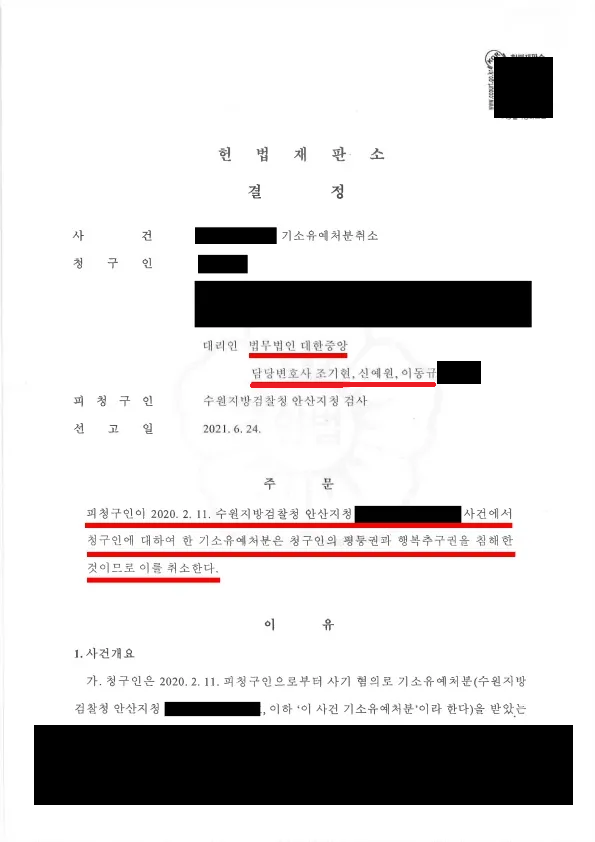 ![[⚖️헌법소원] 사기죄 기소유예 처분 취소!](/_next/image?url=https%3A%2F%2Fd2ai3ajp99ywjy.cloudfront.net%2Fuploads%2Ftitleimage%2Foriginal%2F5c8a02dfa1f04f835fba934d-original.jpg&w=3840&q=75)