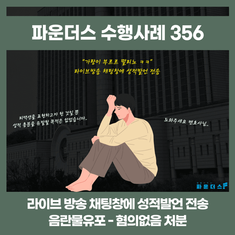 ![[음란물유포 혐의없음] 게임 라이브 방송에서 채팅창에 성적발언](/_next/image?url=https%3A%2F%2Fd2ai3ajp99ywjy.cloudfront.net%2Fuploads%2Ftitleimage%2Foriginal%2F5b890c896696eb4a246e023d-original.jpg&w=3840&q=75)