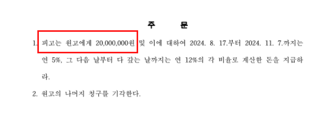 결과적으로 법원은 의뢰인에게 총 2천만 원을 지급하도록 하였습니다.