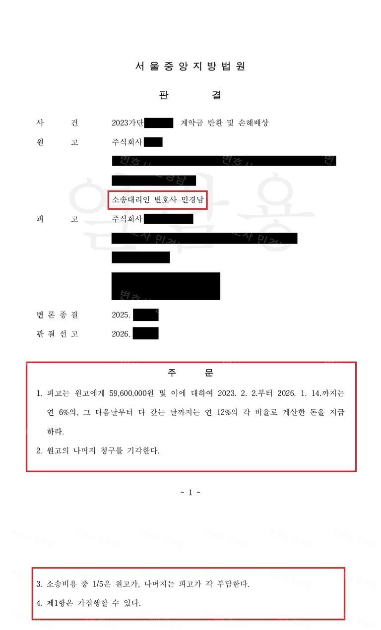 결과적으로 법원은 피고에게 기지급받은 용역비와 손해배상금을 합하여 약 6,000만 원 및 이에 대한 지연손해금을 의뢰인에게 지급하라는 승소 판결을 내렸습니다. 3년 간의 소송 기간 동안 IT 분쟁의 특수성을 이해하고 끝까지 물고 늘어진 변호사의 집념이 만들어낸 값진 승소였습니다.