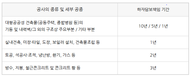 또한 완공 후 발생하는 하자에 대해서는 건설산업기본법 제28조의 법정 기간 내에 발생한 것에 대해서만 시공사가 책임을 집니다