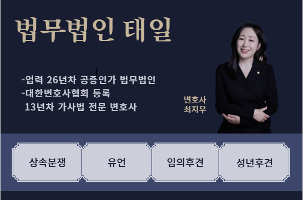 대한변호사 협회에 가사법 전문으로 등록되어 있는 법무법인 태일 최지우 변호사입니다.