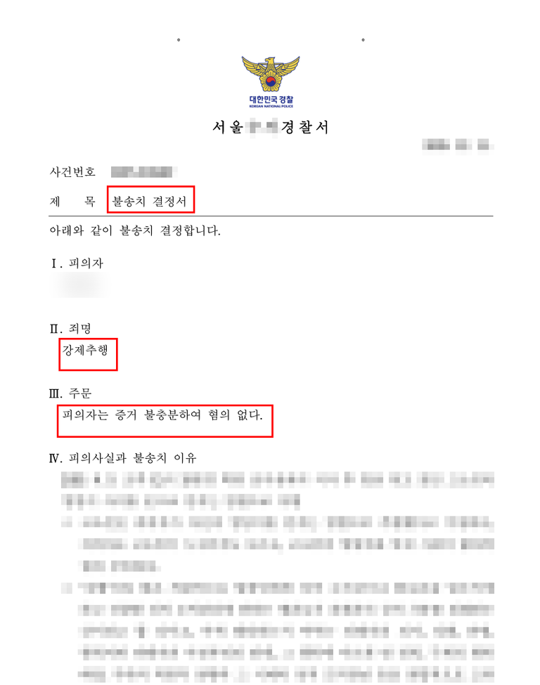 이어지는 글에서는 이런 상황에서 어떻게 불송치 처분을 받아드렸는지 자세히 풀어드리겠습니다.