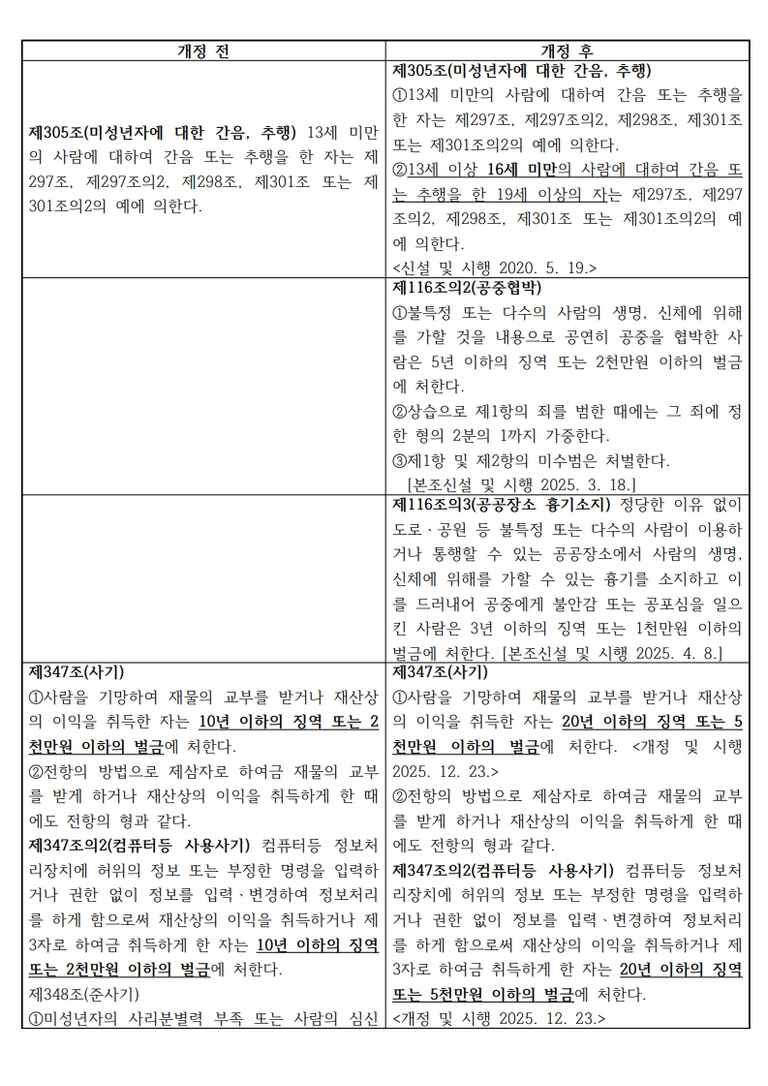 2025년도 개정 또는 신설된 형법 조문을 소개해드리겠습니다.