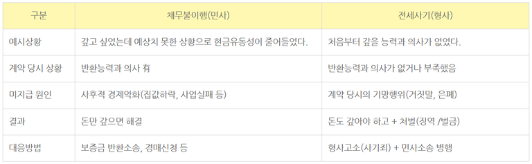 민사상 채무불이행과 형사상 사기의 차이