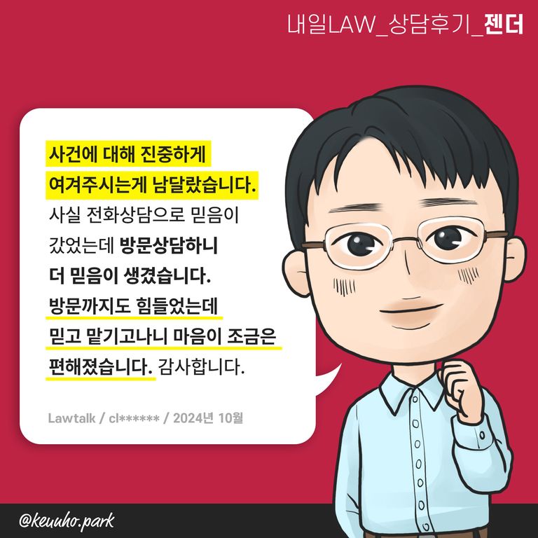 지체없이 박근호 변호사에게 상담 신청을 해 보시기 바랍니다.